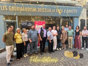 Célia Guisado Pinto et Enzo Settegrana, propriétaires de “C&E Boulangerie Pâtisserie“ ont été accompagnés et soutenus dans leur projet par Initiative Seuil de Provence Ardèche Méridionale en collaboration avec la CMA Ardèche (Fabienne Munoz sa présidente) et la Mission Locale Ardèche Méridionale (Fabienne Vasseur et Vincent Auzas, son président) tous réunis autour de Jean-Yves MEYER, Maire d’Aubenas, Max Tourvieilhe, président de la Communauté de Communes du Bassin d’Aubenas, Ludovic Valette, président de Tendances Aubenas à l’occasion de notre remise de chèque.